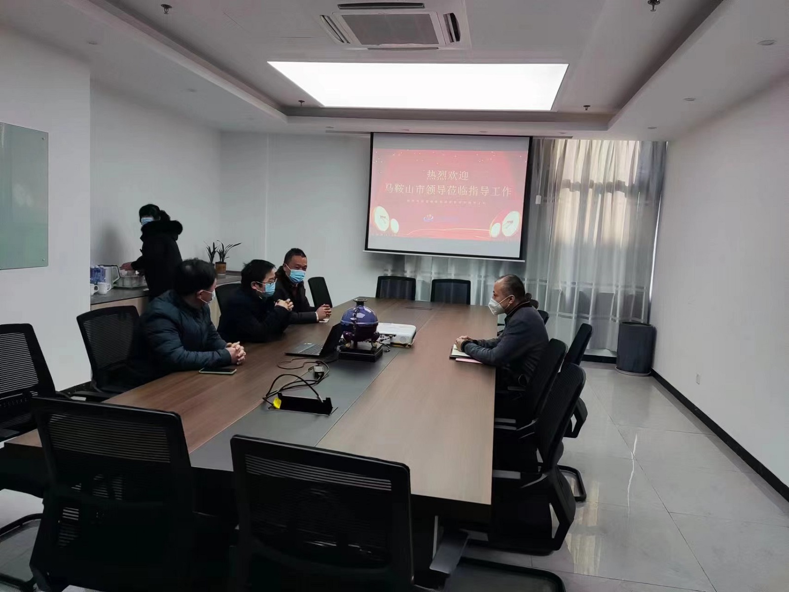 2023年01月17日,馬鞍山市副市長(zhǎng)秦俊峰帶領(lǐng)慈湖高新區(qū)有關(guān)部門(mén)負(fù)責(zé)人一行走訪了我司,公司總經(jīng)理汪總對(duì)市領(lǐng)導(dǎo)的到來(lái)表示熱烈歡迎,并向領(lǐng)導(dǎo)介紹了公司近期發(fā)展?fàn)顩r和未來(lái)的發(fā)展方向。